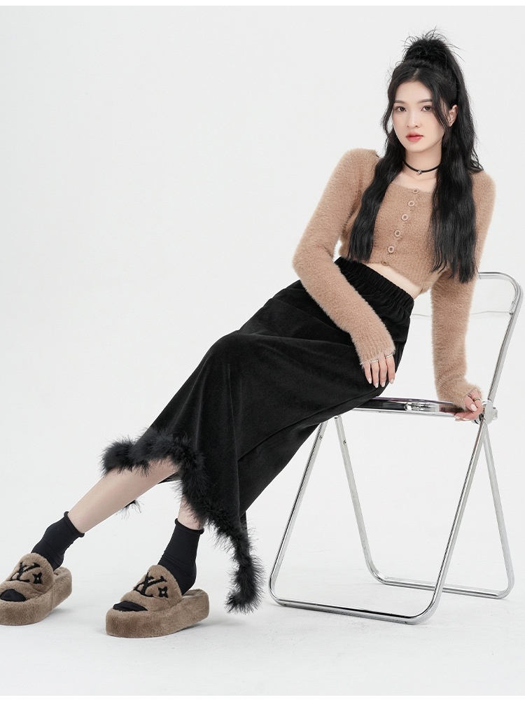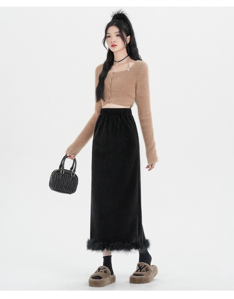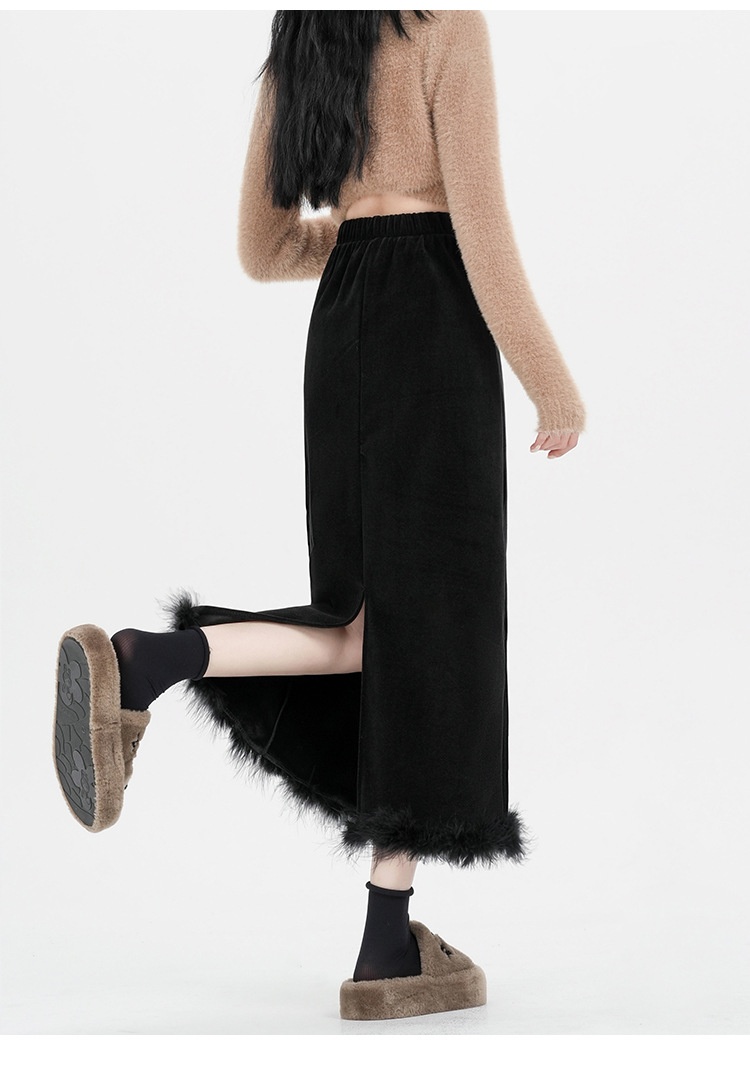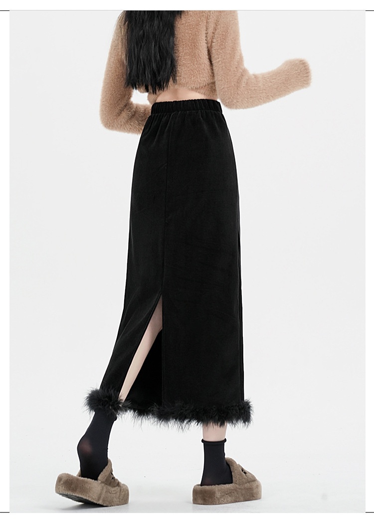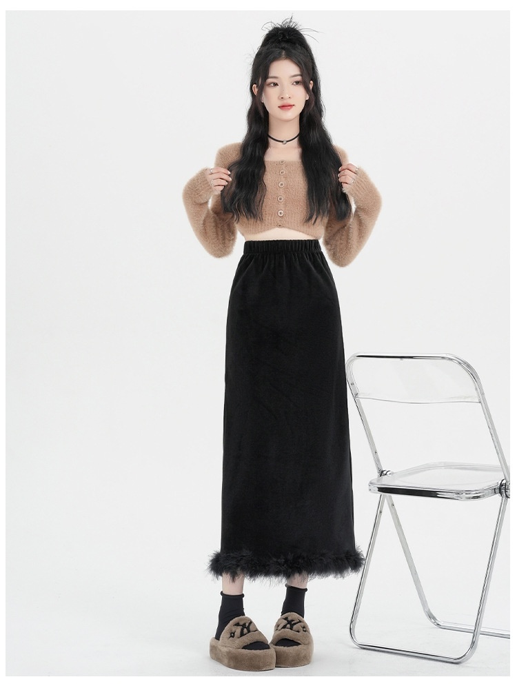Black Plus Velvet Half-length High-waisted Skirt Women